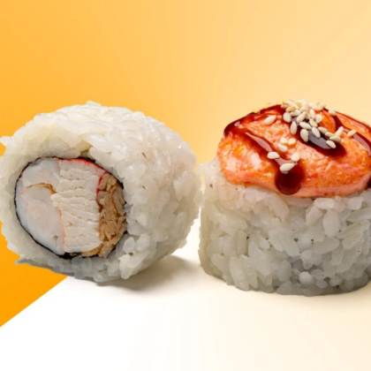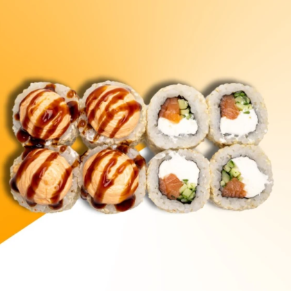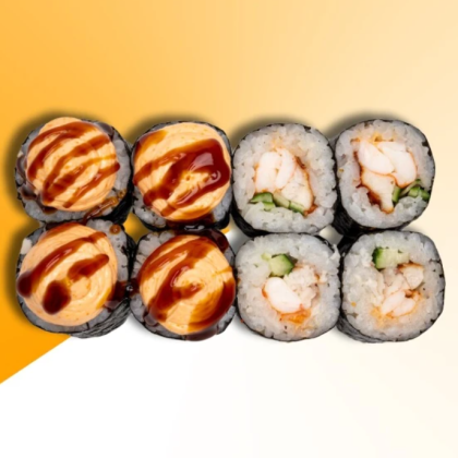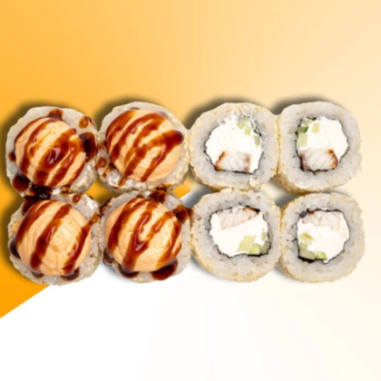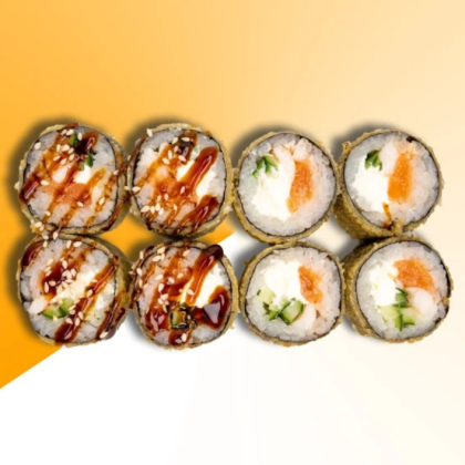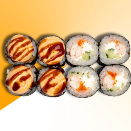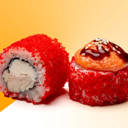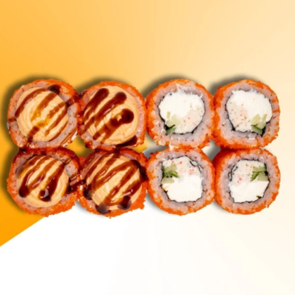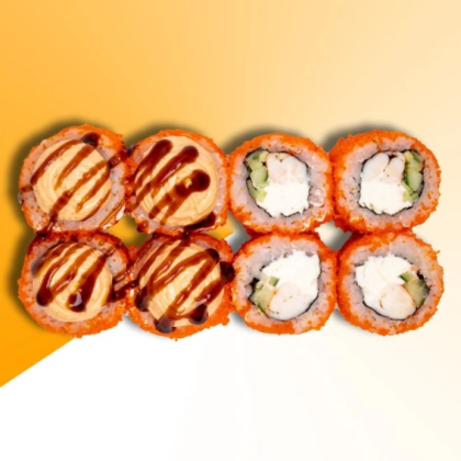Масаго, огурчик, сыр сливочный, краб имитация, унаги соус.